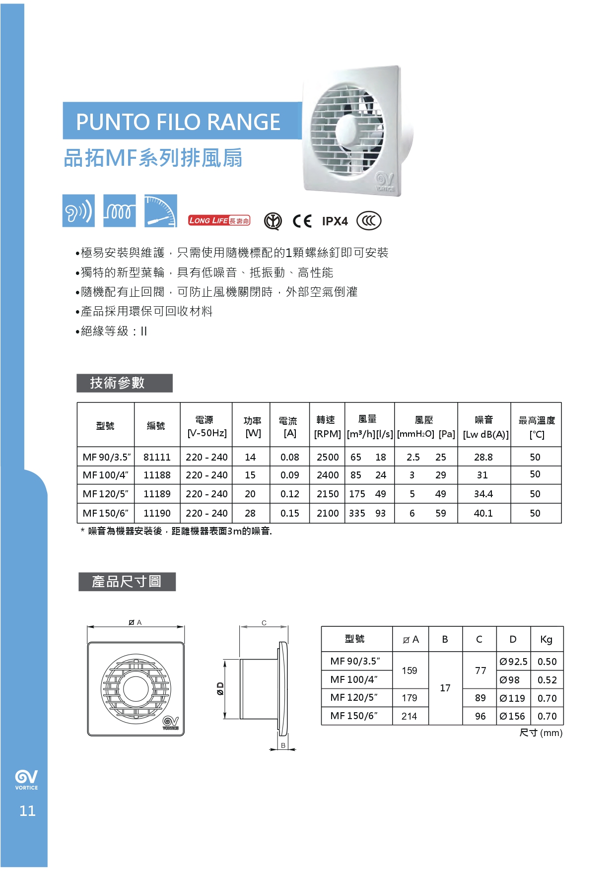 品拓排風扇針對不同空間需求,推出多款系列產品,包含 MEX、ME、MF、MFO,可依據風量需求、安裝方式與使用場景進行選擇。以下將逐一介紹各系列特色,協助快速選型。