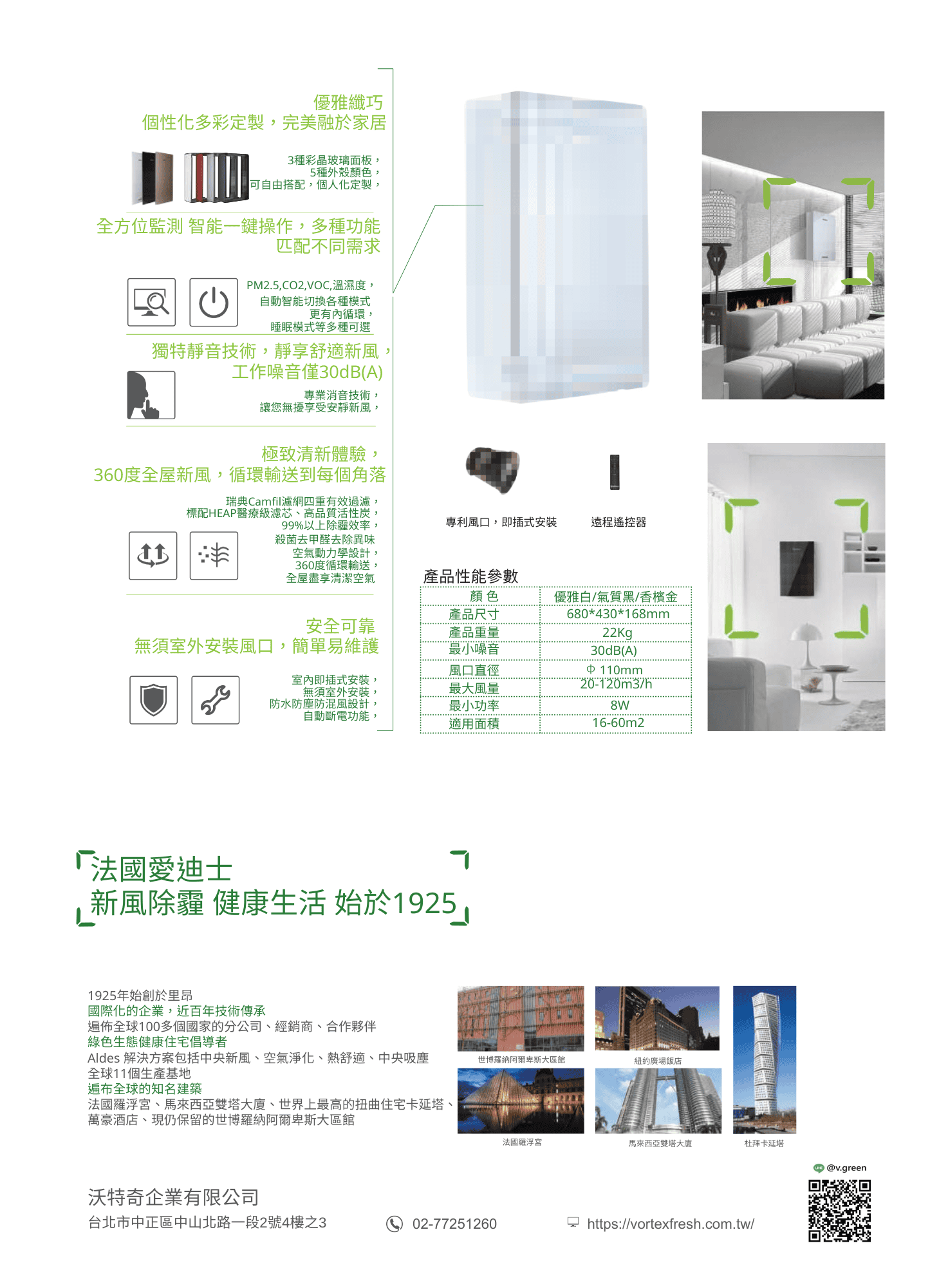 在現代都市生活中,空氣品質已成為影響健康的重要因素。Lyon 壁掛式全熱交換機,由法國愛迪士(Aldes)與沃特奇企業有限公司合作推出,結合百年技術與智能設計,為您帶來更少的霧霾、更少的甲醛,以及更健康的生活體驗。
